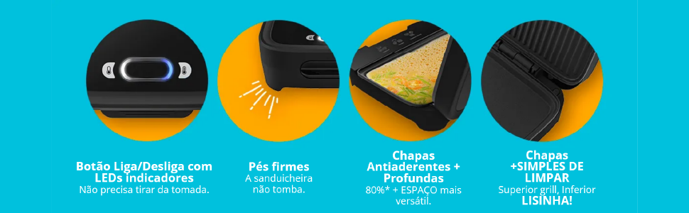 É um eletroportátil resistente, de baixo consumo e ideal para quem faz lanches rápidos todos os dias.